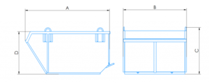 | Typ | Pojemność, m3 | A, mm | B, mm | C, mm | D, mm | Waga, kg | Obciążenie, kg |