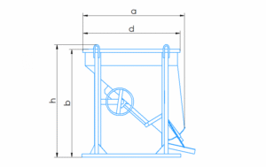 | Typ | Pojemność, m3 | h, mm | b, mm | d, mm | a, mm | Waga, kg | Obciążenie, kg |